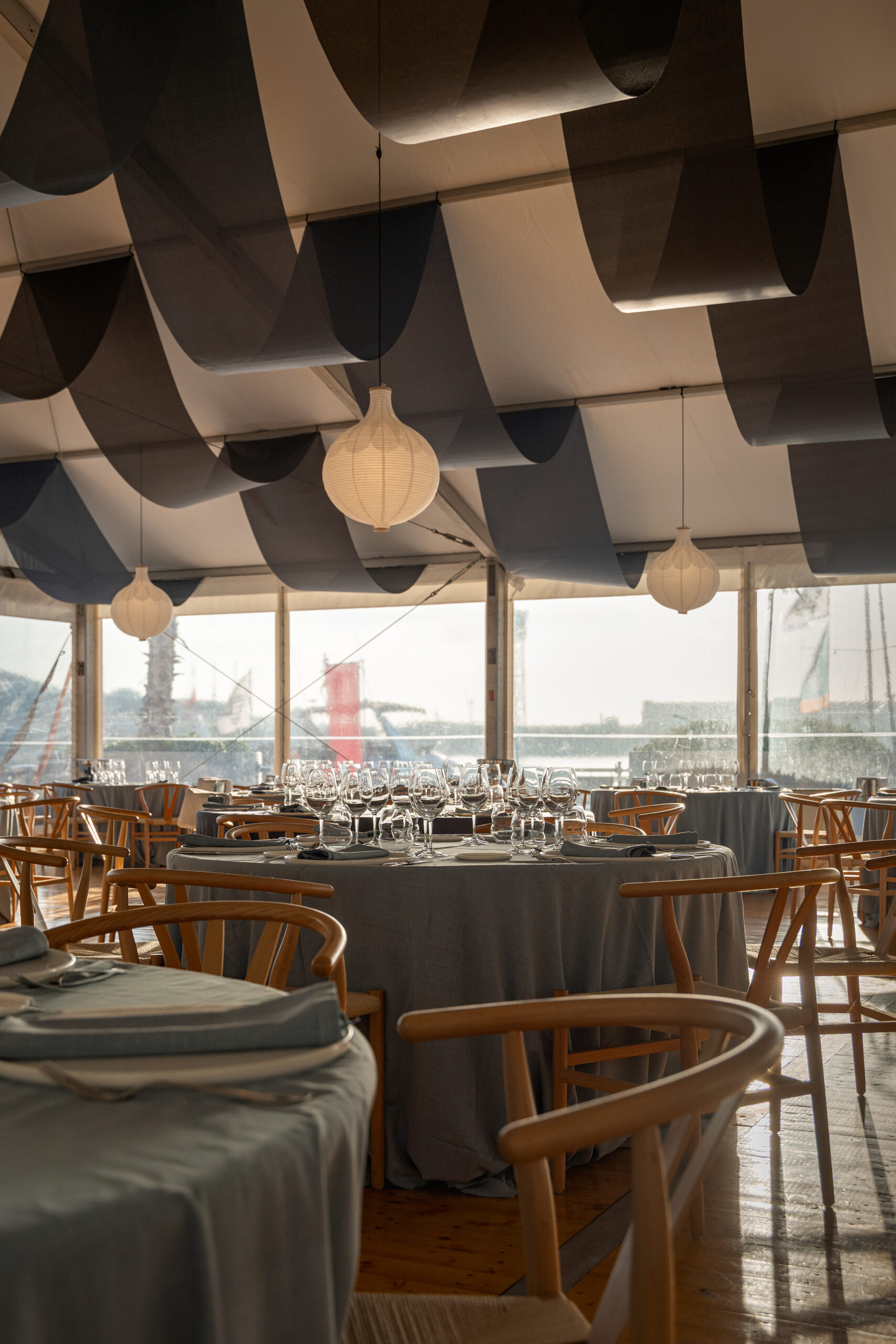 Inside, a haute cuisine restaurant is complemented by an open bar serving tapas and small dishes, and marquees dedicated to the exhibiting brands, offering a versatile and sophisticated environment that invites visitors to explore, connect and experience the essence of the Salón Náutico de Barcelona.